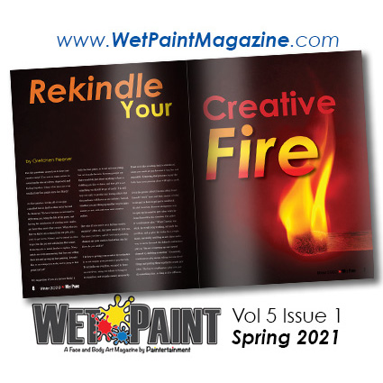 Gretchen Fleener is the editor of Wet Paint Magazine, and also runs Paintertainment.com, and online face & body art supply shop and source of oh-so-much free instruction and inspiration. Find her on Facebook and Instagram @PaintertainmentDotCom, @GlitterGlamper and @GretchenFleenerArtist.